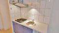 使いやすいシステムキッチンです。キッチン横には食器棚として使える収納棚があります。