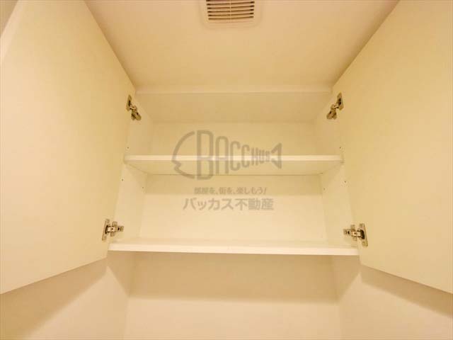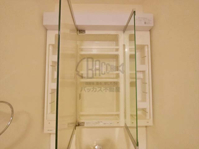 洗面台横には収納スペースがあるので、タオルや洗剤のストックなども収納することができます。