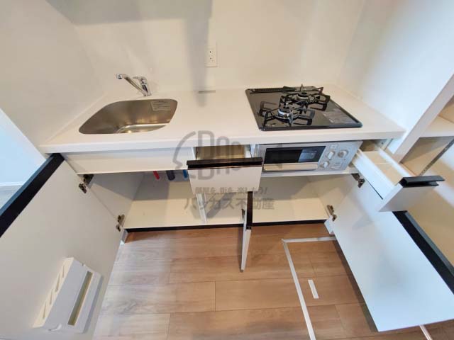 ガス2口コンロで同時調理が可能。魚焼きグリルもあります。
