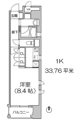 KAISEI本町 1K 33.76㎡│本町・四ツ橋・心斎橋の間取図
