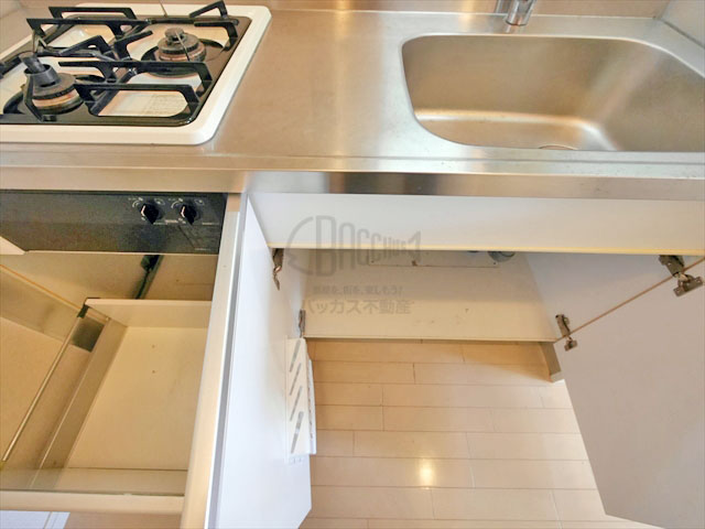 キッチンの下にも収納があり、鍋類や調味料が保管できます。