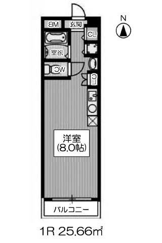セラフ天満橋 Atype 1R 25.66㎡の間取図※間取り図コメント