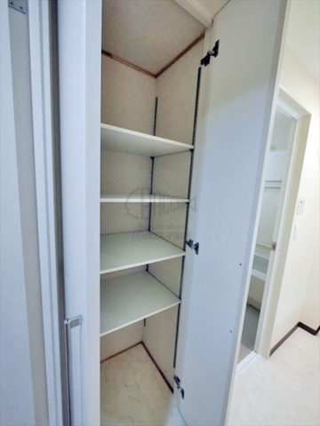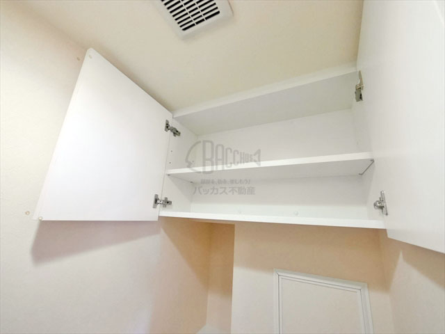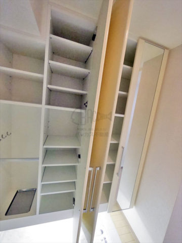 洗面所のある収納です。タオル類、洗剤、ドライヤーなど、なんでもここへ