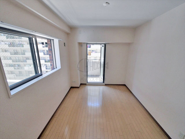 6帖ある洋室。南側に窓、西側にバルコニーの2面窓でとても明るいです。