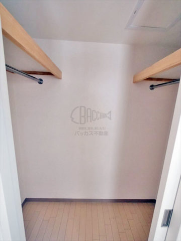 こんなに広いウォークインクローゼットが付いています。両側に洋服かけと