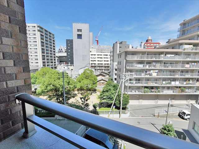 現地5階東側の眺望。江之子島公園を望むパークビューマンションです。